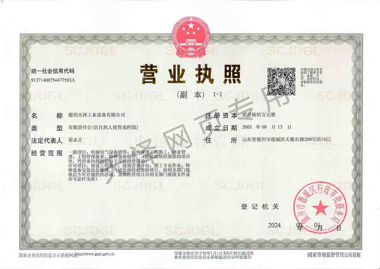 德州天澤工業設備有限公司成立于2003年(前身為德州天元集團天明工業設備安裝公司),經過20多年的發展,現成長為擁有職工600余人,各類專業技術人員近300余人,年生產能力兩億元以上,以建筑機電安裝工程、消防設施安裝工程施工為主,集建筑工程施工、市政工程施工、建筑智能化工程施工、園林綠化工程施工、工程管理服務、物業管理、電氣機械設備銷售等多元化經營于一體的綜合型企業。2005年,企業按照國際標準建立的質量管理體系,通過了ISO質量管理體系認證、環境管理體系認證、職業健康安全管理體系認證。施工工程遍布山東、河北、四川、江蘇等地,最具代表性的工程有:山東省德州市百腦匯資訊廣場機電安裝工程、德州經濟開發區天元大廈機電安裝工程、陵城區人民醫院機電安裝工程、德州金魯班大廈機電安裝工程、河北故城金辰小區機電安裝工程、北川地震災后援建工程等。多年來,公司始終堅持“以人為本,建精品工程,創行業品牌”的經營理念,先后榮獲。ㄊ校┘壧┥奖⑻旄、魯安杯等獎項,申報各種功法、多項專利。